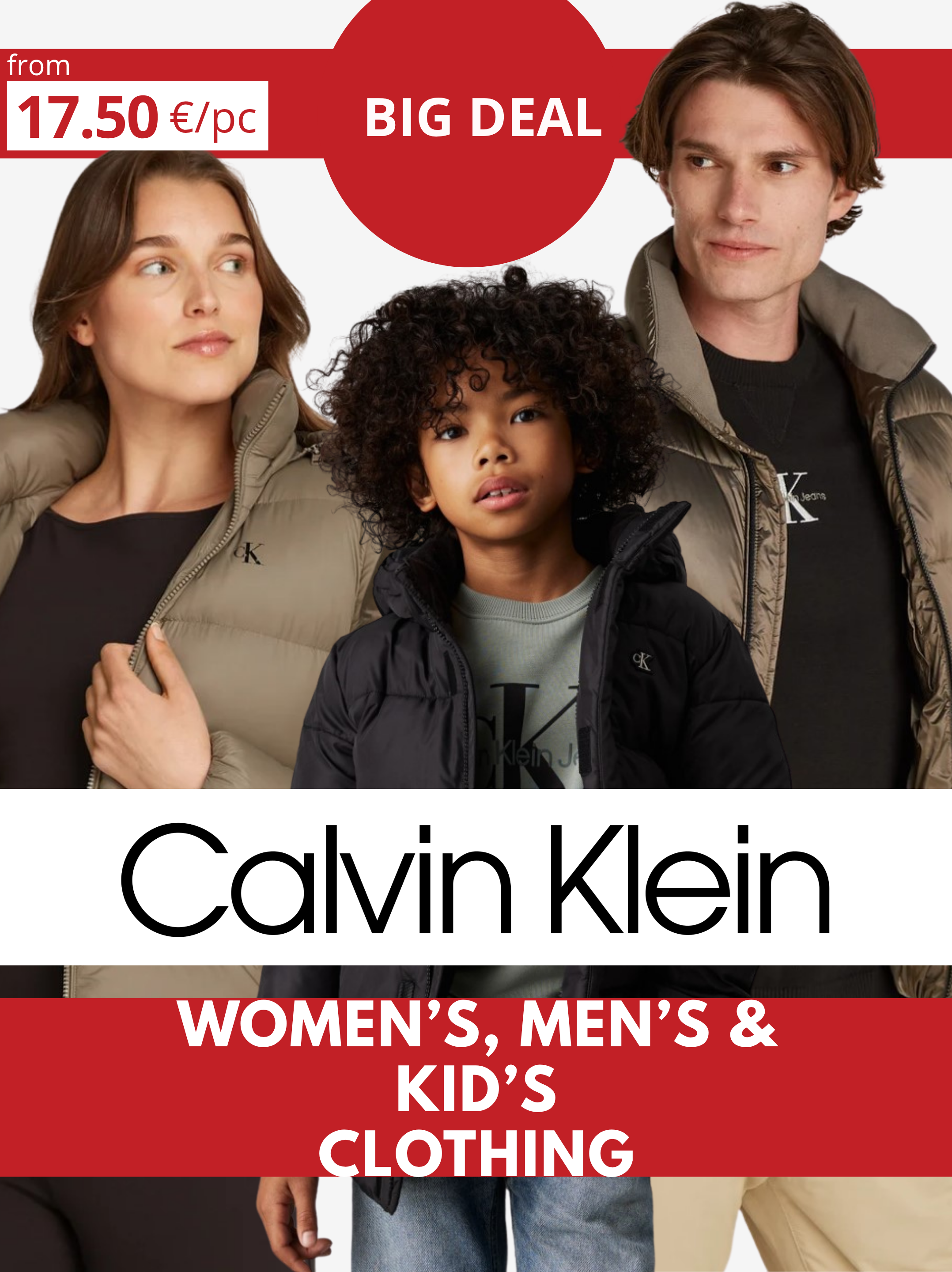 • Package content: Calvin Klein men's, women's and kid's lot.