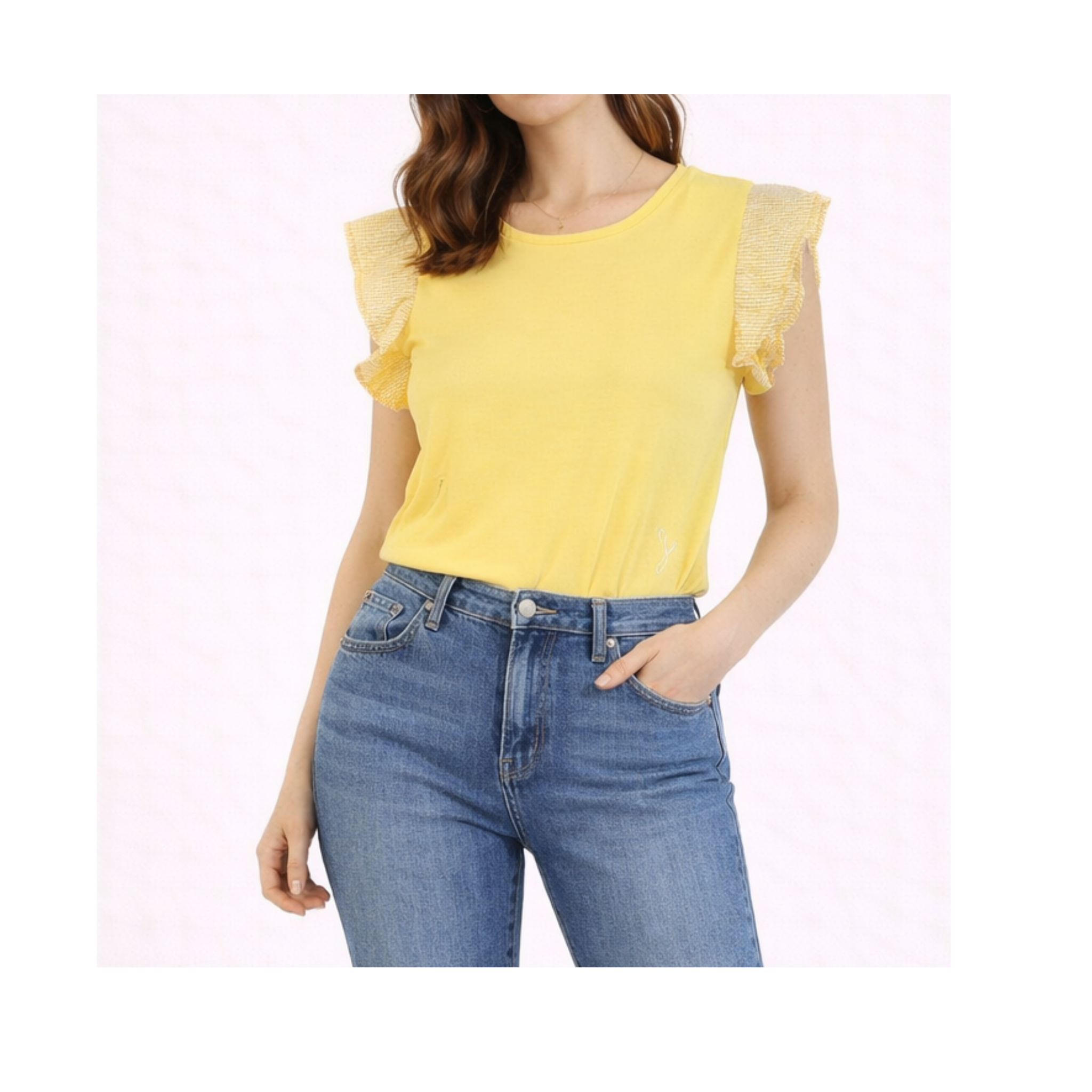 Tricou de la Naf-Naf pentru femei. Culoare: Galben. Mărime: XS. EAN: 3606847208394