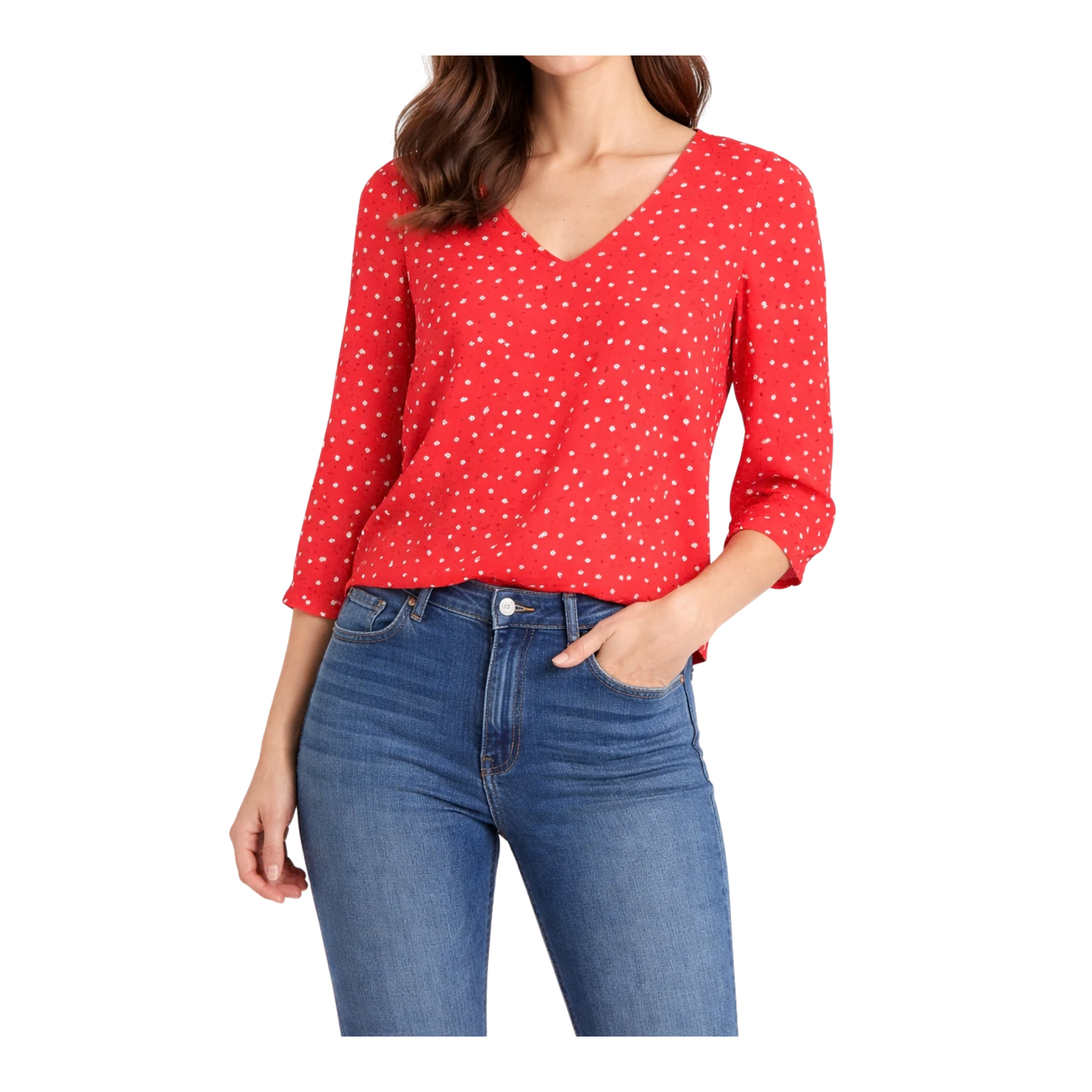 Bluză cu mânecă lungă de la Naf-Naf pentru femei. Culoare: Motiv Rouge. Mărime: 32. EAN: 3606847294007