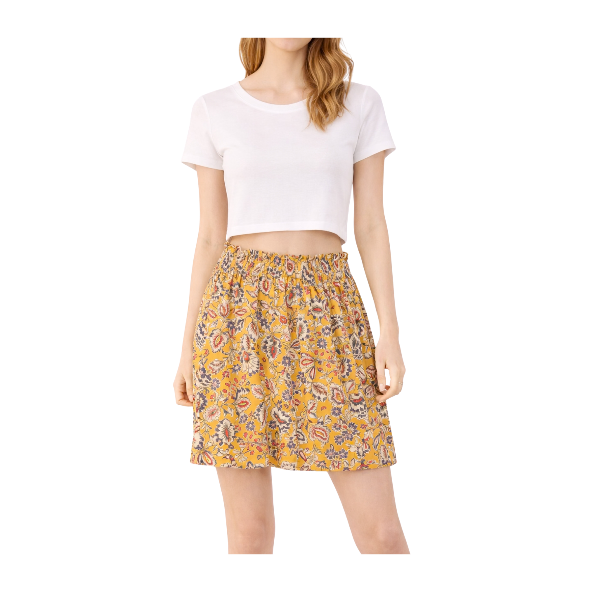 Fustă de la Naf-Naf pentru femei. Culoare: Galben. Mărime: S. EAN: 3606847424664