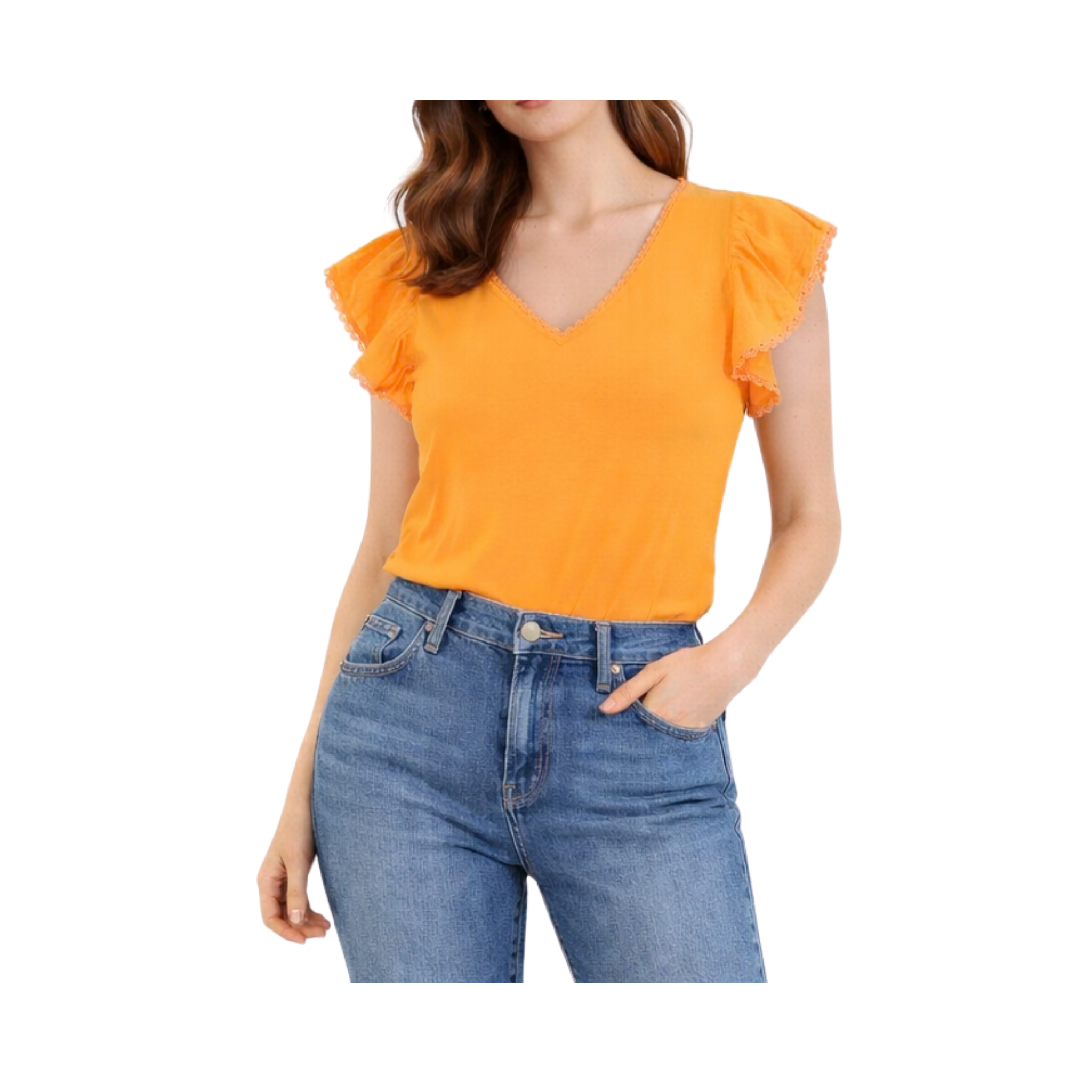 Bluză cu mânecă scurtă de la Naf-Naf pentru femei. Culoare: Mangue. Mărime: M. EAN: 3606847391188